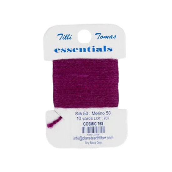 50% silk 50% Merino Wool, Non-strandable, 10 yards, Best suited for 18 mesh.