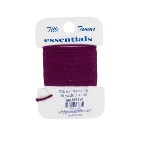 50% silk 50% Merino Wool, Non-strandable, 10 yards, Best suited for 18 mesh.