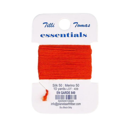 50% silk 50% Merino Wool, Non-strandable, 10 yards, Best suited for 18 mesh.