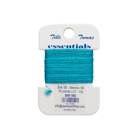 50% silk 50% Merino Wool, Non-strandable, 10 yards, Best suited for 18 mesh.